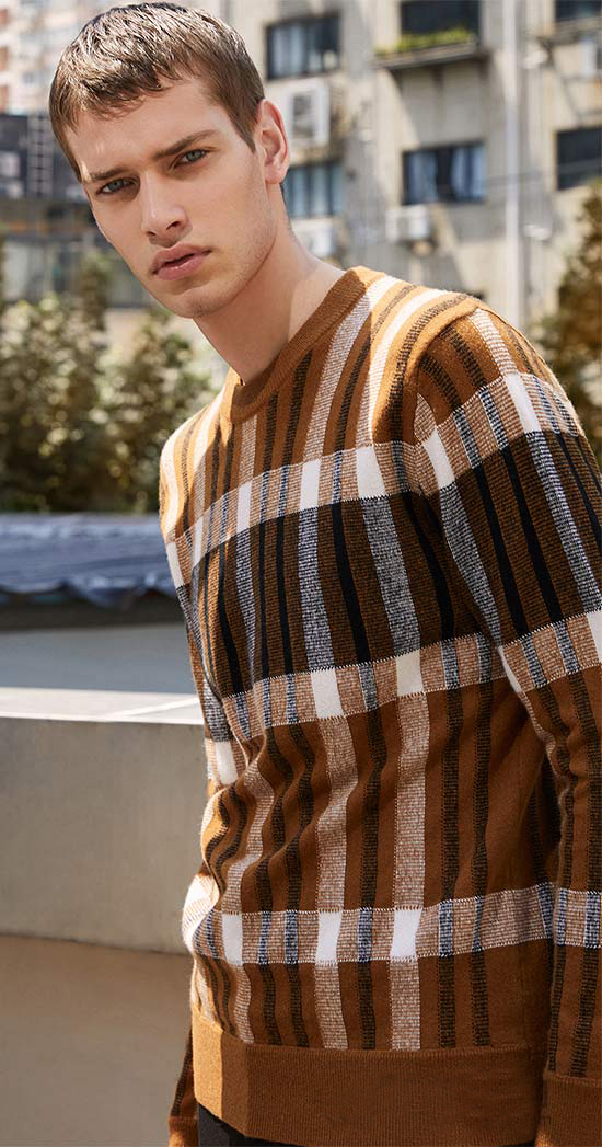 針織套頭衫,加以經(jīng)典英倫風(fēng)格紋點(diǎn)綴,打造閑適自由的都市紳士形象~~~